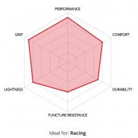 イタリアハンドメイドによる、耐パンク性能を誇るRKB(保護ベルト)、CORSA EVOより軽量に仕上げ軽がり抵抗を最小限に抑えたラバートレッド、優れた耐久性を持つケブラービート、SPS サイドウオール保護システムなど素晴らしいレベルの決戦/ヒルクライムに適したタイヤです。