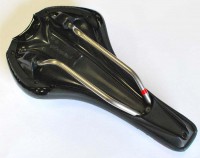 エアロポジションを考慮して、サドル前側に座ることを前提の短め幅広のつくり、特にサドル前側のクッション性を向上させています。