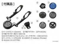 ガーミン、ブライトン、レザイン、キャットアイ、ポラール、ワフー、パイオニア等10ブランドのサイクルコンピュータ(GPS)に対応するユニバーサルなメーターマウントです。