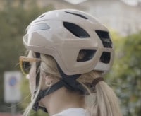 継ぎ目が無い一体成型のアウターシェルで、ヘルメットの下部は帽体のEPSを包み込むように内部側に折り込まれています。これは転倒時にシェルの継ぎ目からヘルメットが破断することを防ぐだけでなく、SINTESIの洗練されたスタイルにも活かされています。